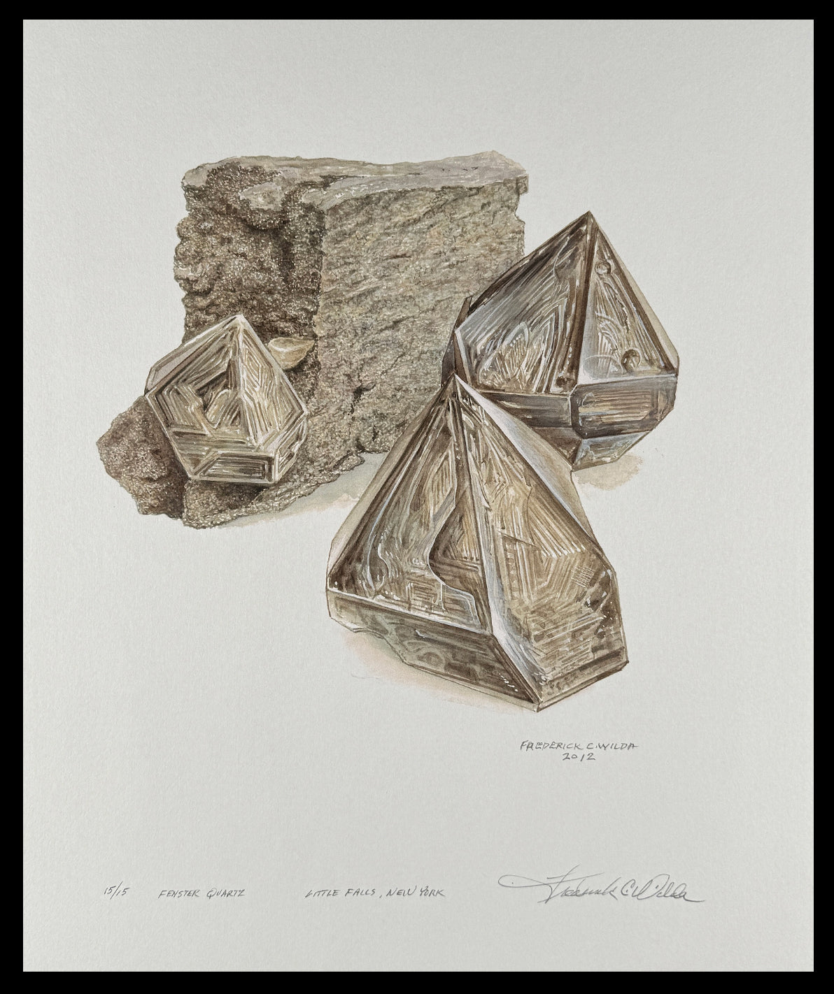 In 1997, Fred discovered the world of natural mineral crystals and started developing a collection. He decided to do paintings of the crystals using his talent to capture the essence of their natural beauty. He chose watercolor as his medium, working from actual specimens