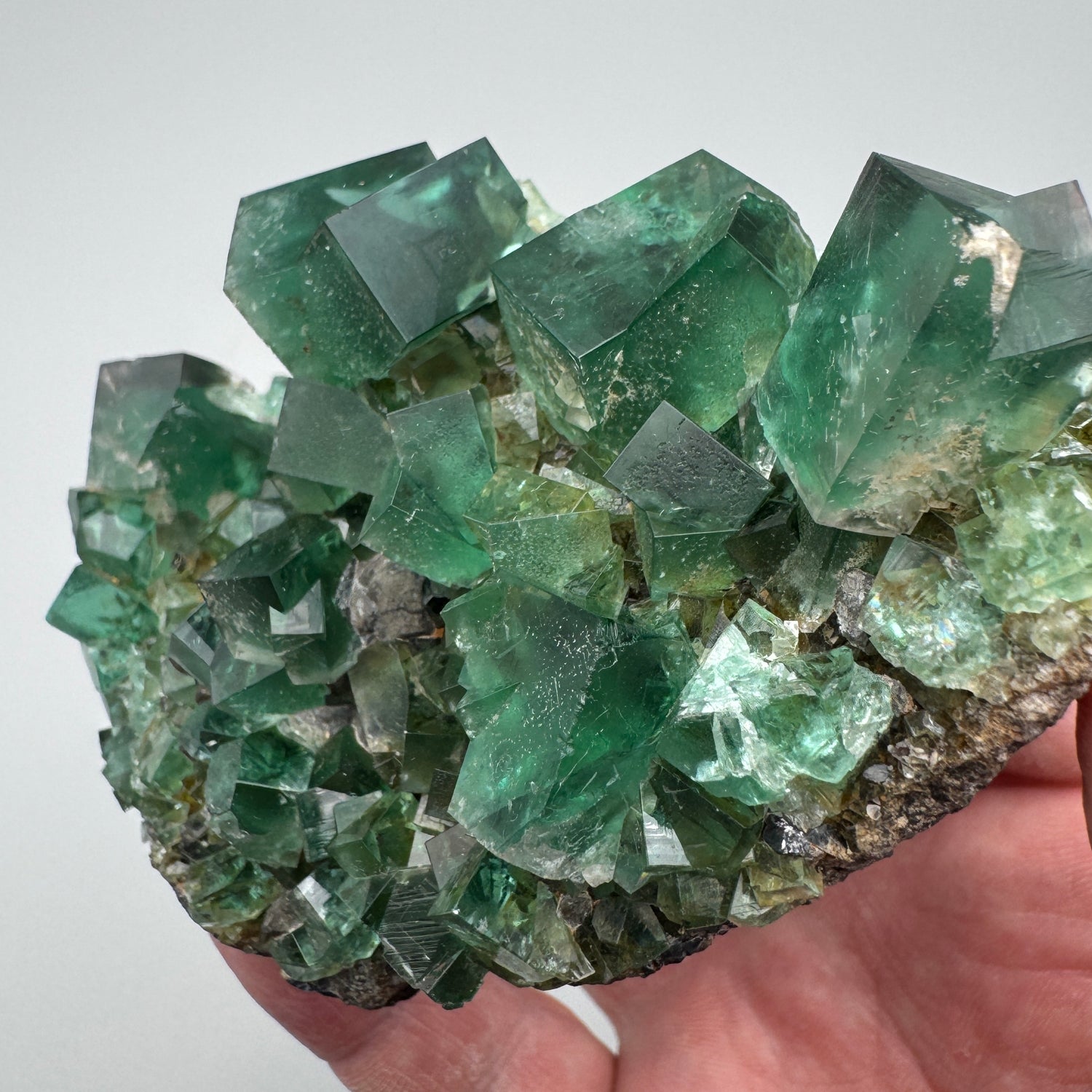 Rogerley fluorite is one of our favorite minerals for its natural ability to color shift in sunlight(blue), artificial(green) and UV(purple) light. The source responsible for the amazing colors is a bit of a mystery but it is believed to be a result of structural defects and not influenced by outside sources.