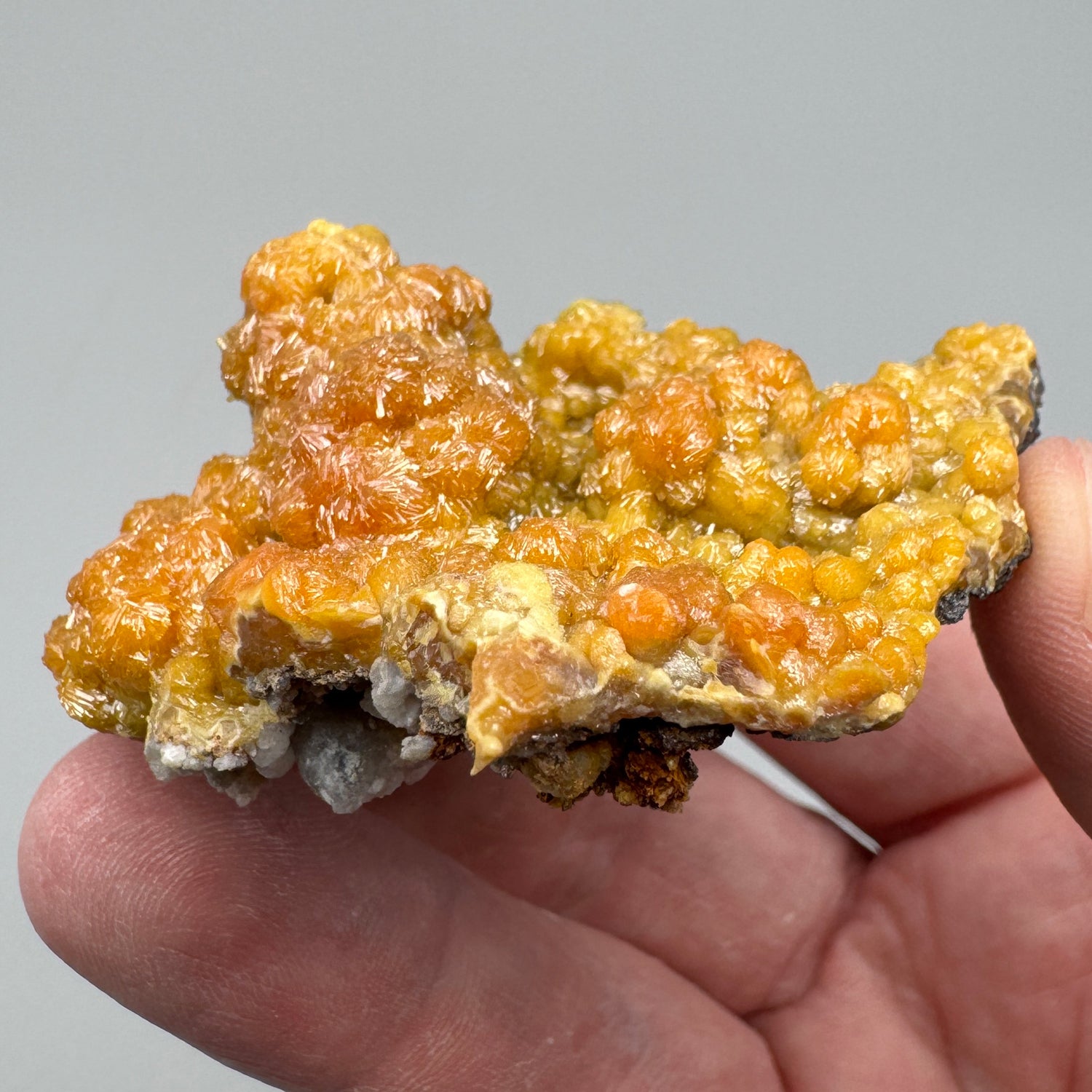 A really great example of pyromorphite from a world famous mine - This specimen features a botryoidal mass of crystals bubbling up from the surrounding smaller crystals - A very aesthetic grouping and color range.