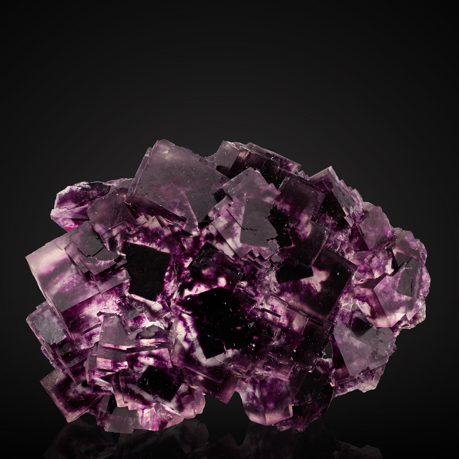 Fluorite from the Okorusu Mine has become very popular on the modern market and rightfully so - Particular specimens are instantly recognizable for their beautiful zoning. The "Diamond Pocket" is well known for producing specimens with sharp "diamond" phantoms. This particular specimen is mostly translucent throughout but when backlit the dark purple "diamond" phantoms are revealed! The majority of these specimens were "worked" - The matrix/crystal structure was removed to create a "shell" with a stained glass effect when backlit. These were mined around 15 years ago and not many were found - Don't miss a chance to add one of these beautys to your fluorite collection!