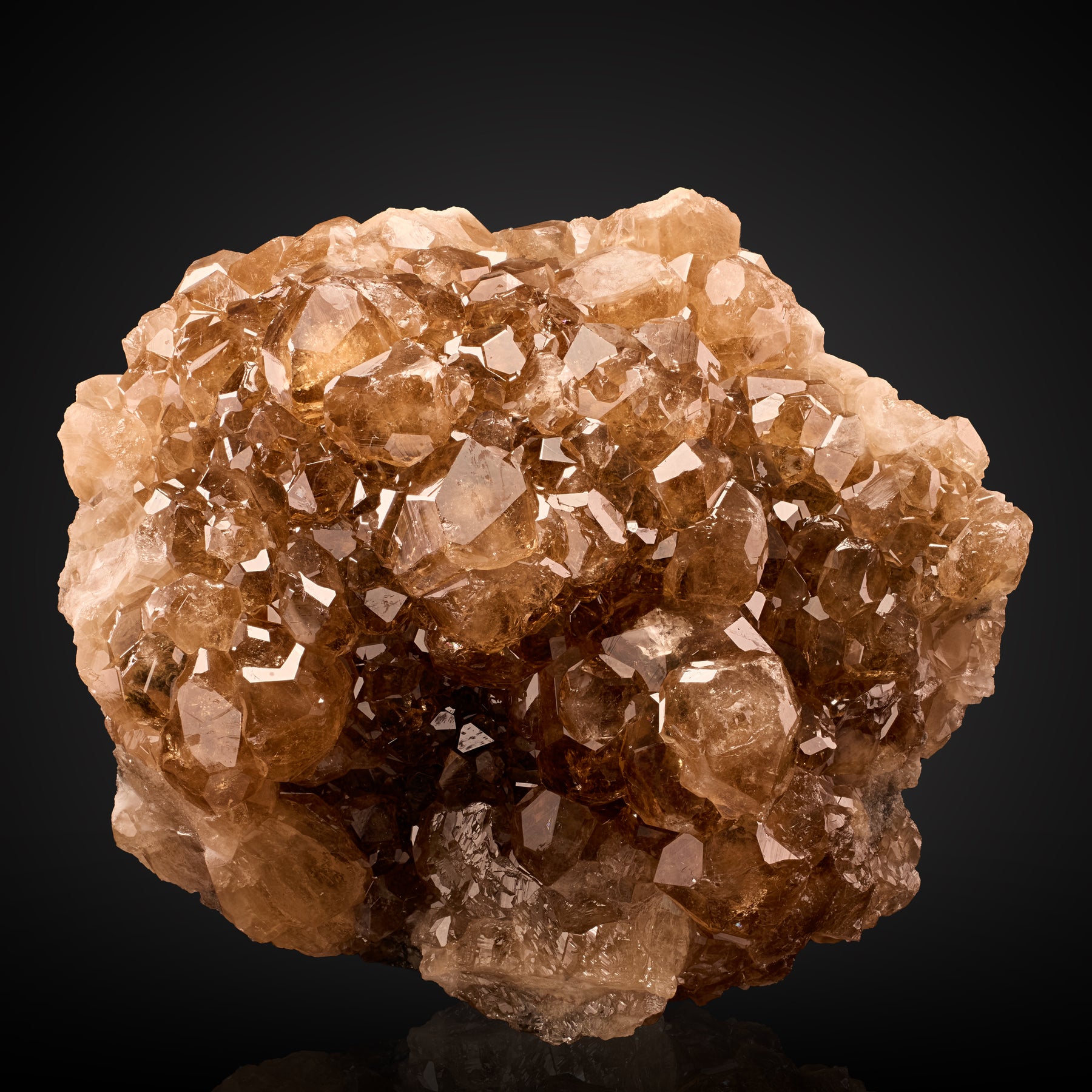 This large and beautiful specimen of Grossular Garnet from the Jeffrey Mine is a showstopper! If you like showy and eye catching specimens this is the one for you - Light dances across the intergrown crystal faces like a disco ball! Specimens of this size and quality are not common on the modern market.